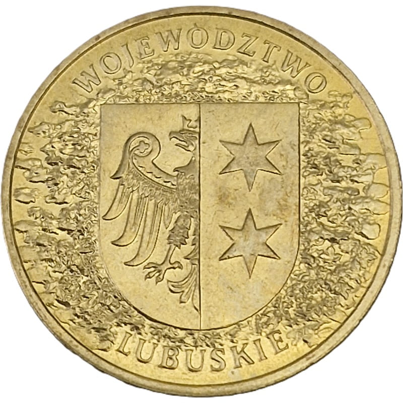 2 zł Województwo Lubuskie 2004 r. - Moneta okolicznościowa NBP - Narodowy Bank Polski z serii Herby Województw Nordic Gold. Moneta w woreczku strunowym.