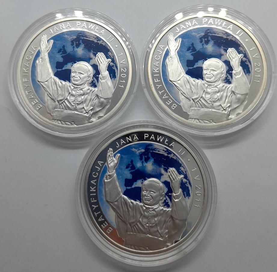 Beatyfikacja Jana Pawła II 01 V 2011 r. - srebrna moneta kolekcjonerska 20 złotych NBP - Narodowy Bank Polski, producent Mennica Polska S.A., z serii Jan Paweł II., stempel lustrzany. moneta w kapslu ochronnym, stan zachowania L/L, real foto.