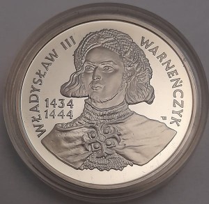 200 000 zł Władysław Warneńczyk 1992 r. - Srebrna moneta kolekcjonerska NBP - Narodowy Bank Polski z serii Poczet Królów i Książąt Polskich. Moneta numer w kapslu ochronnym.