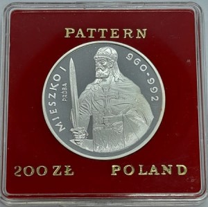 200 zł Mieszko I 1979 r. - srebrna moneta kolekcjonerska 200 złotych NBP, producent Mennica Polska S.A., z serii Poczet królów i książąt polskich próba, stempel lustrzany, stan zachowania L/L, real foto