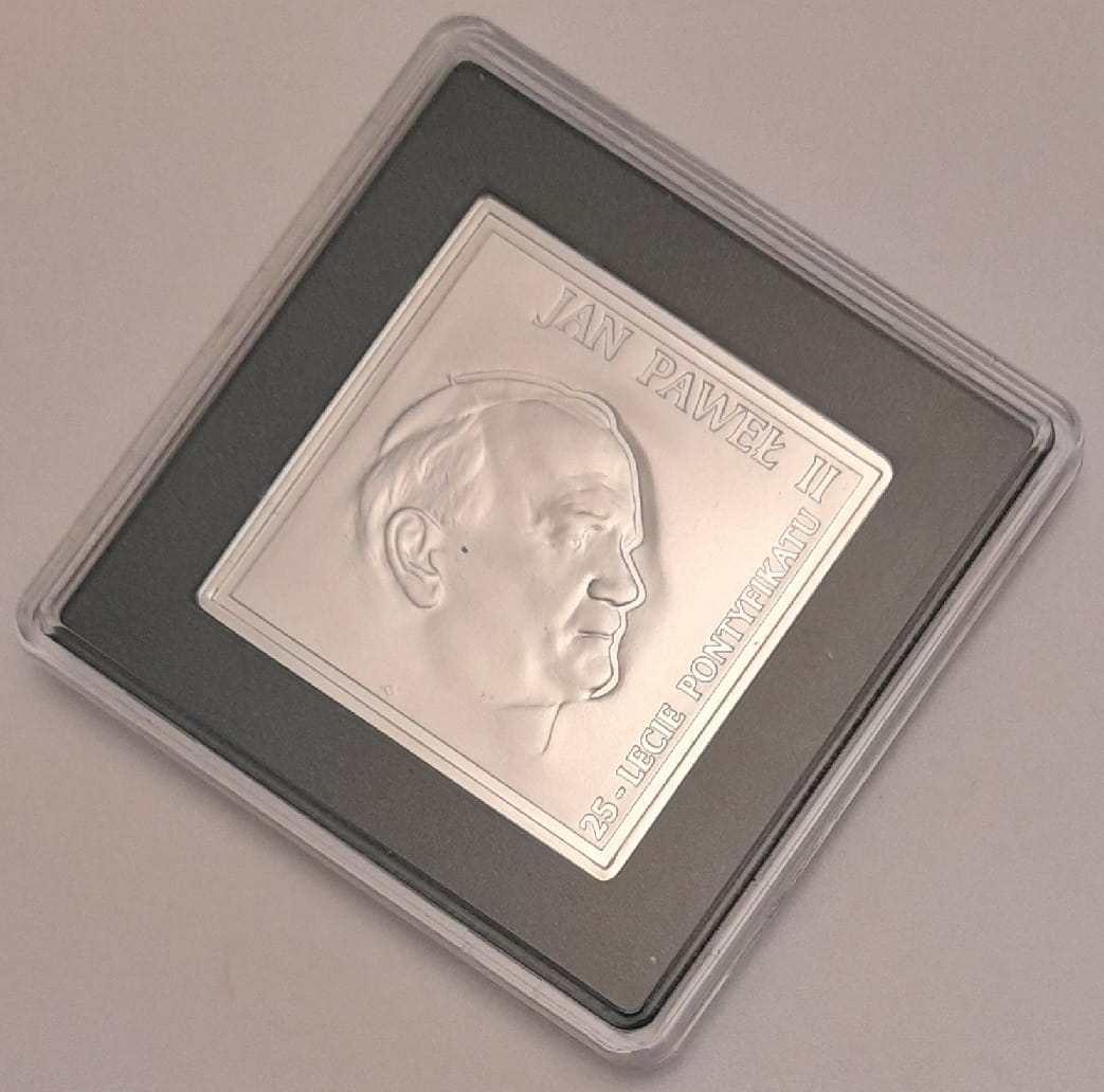20 zł 25-lecie Pontyfikatu Jana Pawła II 2003 r. - Srebrna moneta kolekcjonerska NBP - Narodowy Bank Polski z serii Jan Paweł II. Moneta w kapslu ochronnym.