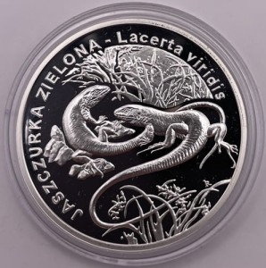 20 zł Jaszczurka zielona 2009 r. - Srebrna moneta kolekcjonerska NBP z serii Zwierzęta Świata, numer 16 z 22 w serii. Moneta w kapslu ochronnym