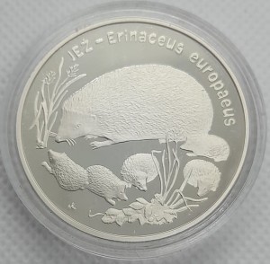 20 zł Jeż 1996 r. - Srebrna moneta kolekcjonerska NBP z serii Zwierzęta Świata, numer 3 z 22 w serii. Moneta w kapslu ochronnym