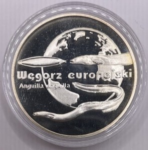 20 zł Węgorz Europejski 2003 r. - Srebrna moneta kolekcjonerska NBP z serii Zwierzęta Świata, numer 10 z 22 w serii. Moneta w kapslu ochronnym