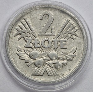 2 złotych 1974 r. - obiegowa moneta 2 złote Jagody PRL - Polsk Rzeczpospolita Ludowa, producent Mennica Polska S.A., aluminium, stempel zwykły, moneta w woreczku strunowym.