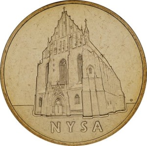 2 zł Nysa 2006 r. - Moneta okolicznościowa NBP (Narodowy Bank Polski) Nordic Gold z serii Historyczne Miasta w Polsce numer 11 z 32. Moneta w woreczku strunowym.