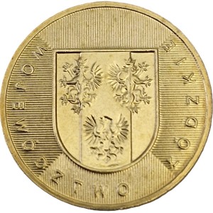 Na rewersie został przedstawiony herb województwa łódzkiego, a wokół niego stylizowane tło. Po lewej stronie monety przy jej rancie od góry ku dołowi napis: WOJEWÓDZTWO. Po prawej stronie monety od dołu ku górze napis: ŁÓDZKIE.