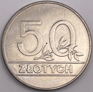 Moneta ta datę swojej emisji miała 2 listopada 1990 roku i została wycofana z obiegu 1 stycznia 1995 roku, czyli była w nim dość krótko. Jest to pierwsza moneta obiegowa o nominale 50 złotych nie będąca monetą okolicznościową. Nie było emisji innych roczników tej monety niż 1990.
