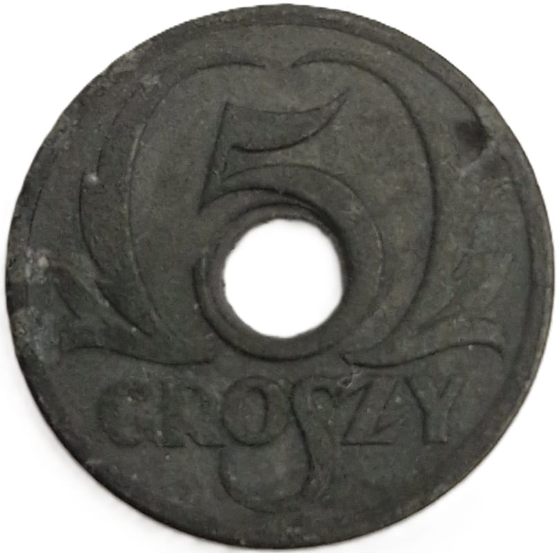 5 groszy 1939 r. - moneta obiegowa groszowa z okresu międzywojennego.
