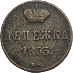 U góry monety także jak na awersie carska korona z krzyżem u góry. Poniżej cyrylicą napis donieżka. Pod napisem rok emisji monety 1853. Na samym dole drobną czcionką duże litery cyrylicy B.M. od słów Варшавская Монета