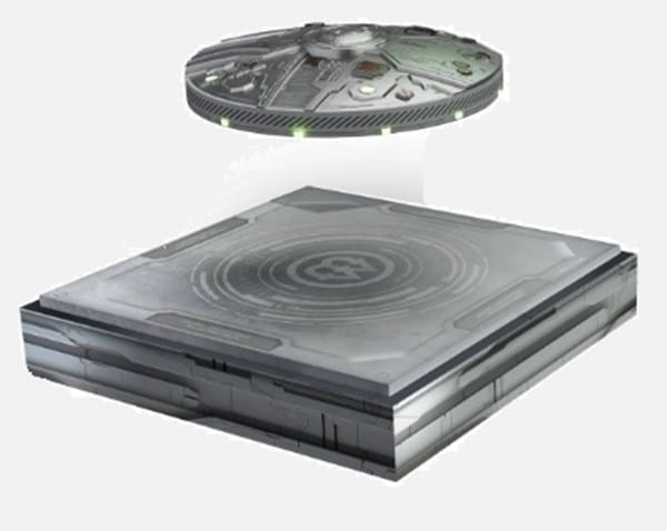 Ufo MP-1766, 1766 franków CFA - Pierwsza na świecie latająca moneta! Srebrna moneta najwyższej próby Ag999 o wadze aż 7 uncji (217,70 gram). Duże specjalne dedykowane pudełko. Bardzo wysoka jakość wykończania różnymi technikami takimi jak wysoki relief, antique finish, selektywne miedziowanie, żywica farba fluorescencyjna, druk cyfrowy.