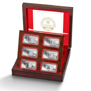 Zestaw monet Polskie Banknoty 2008 r. - Zestaw monet w drewnianym pudełku NBP z certyfikatem.