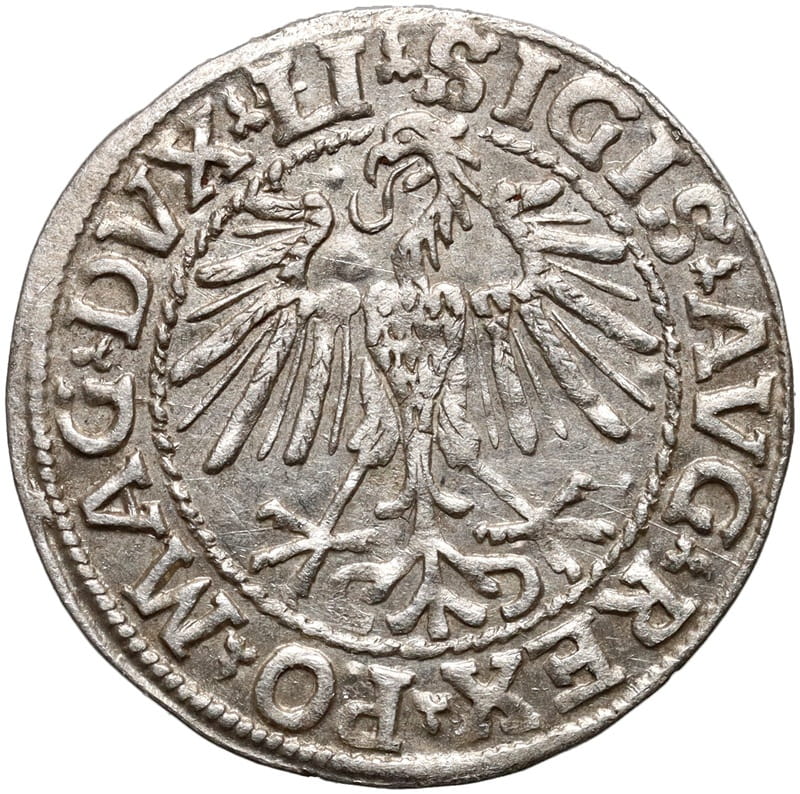 Moneta Zygmunta II Augusta - piękny bardzo czytelny egzemplarz. Srebro, stan zachowania 2, real foto