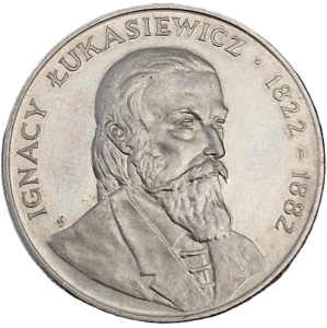 50 zł Ignacy Łukasiewicz 1983 - Dość rzadka moneta okolicznościowa PRL Polska Rzeczpospolita Ludowa miedzionikiel. Moneta w woreczku strunowym.