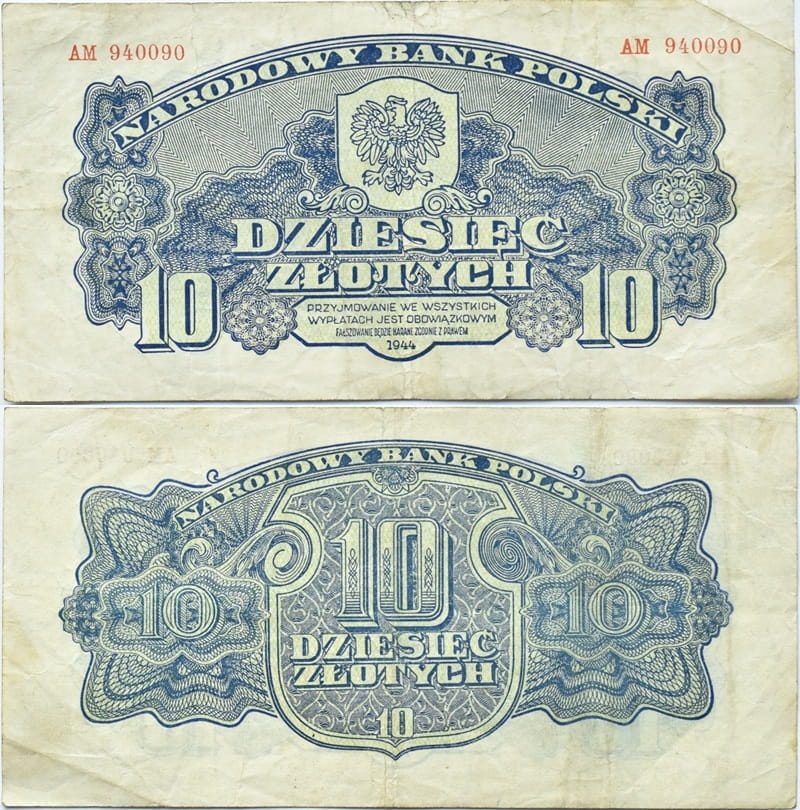 Banknot 10 zł 1944 r. - banknot obiegowy z okresu okupacji niemieckiej, emisja lubelska