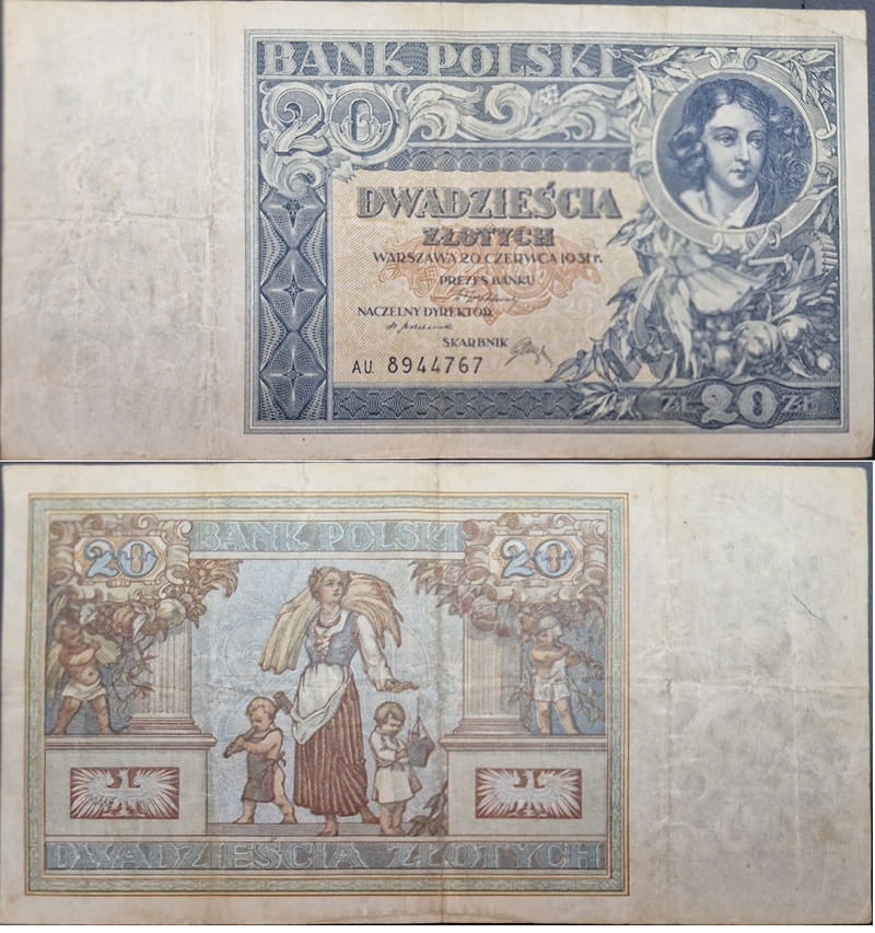 20 złotych 1931 r. - Banknot obiegowy z okresu międzywojennego