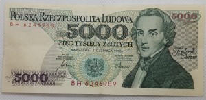 5000 zł Fryderyk Chopin 1986 r. - Banknot obiegowy PRL Narodowy Bank Polski