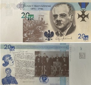 Banknot testowy PWPW Ignacy Matuszewski 2016