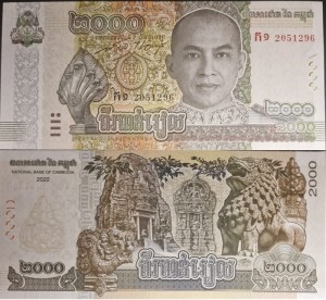 Banknot 2000 riels 2022 rok - Banknot obiegowy w stanie UNC z serii banknoty świata kontynent Azja.