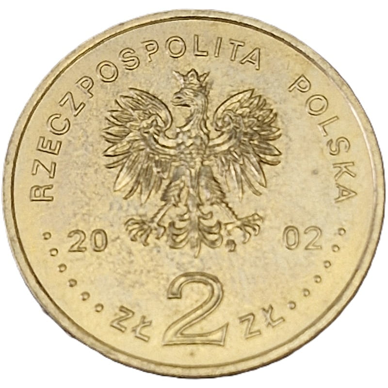 Na awersie orzeł w koronie ustanowiony dla godła Rzeczypospolitej Polskiej. Po obu bokach orła oznaczenie roku emisji monet: 20-02. Pod orłem nominał monety z zapisie: ZŁ 2 ZŁ. W otoku monety przy rancie napis dużymi literami: Rzeczpospolita Polska poprzedzony oraz zakończony sześcioma perełkami. Pod lewą łapą orła znak mennicy: m/w