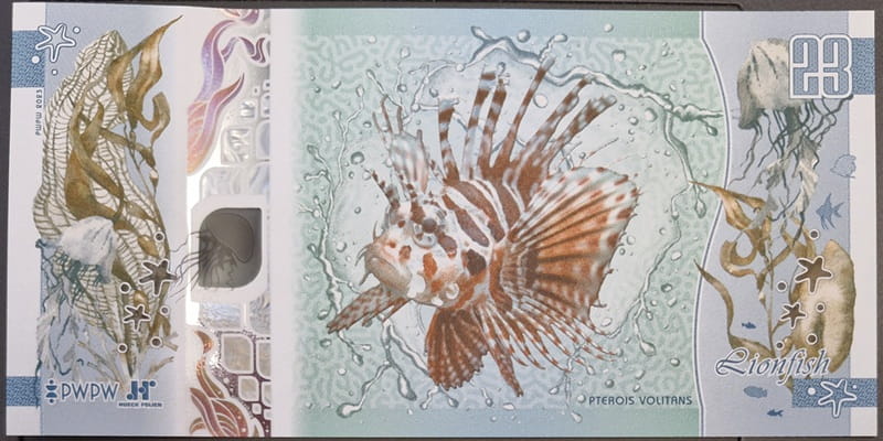 PWPW Coral 2023 Ryba Skrzydlica banknot testowy