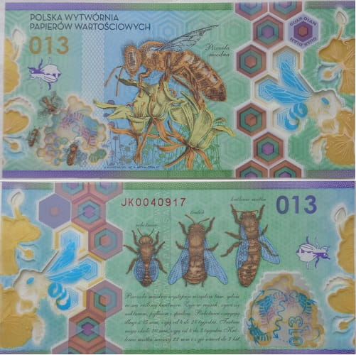 Pszczoła Miodna 013 - banknot testowy polimer Państwowa Wytwórnia Papierów Wartościowych
