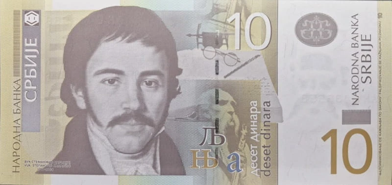 Awers banknotu 10 dinarów Serbia