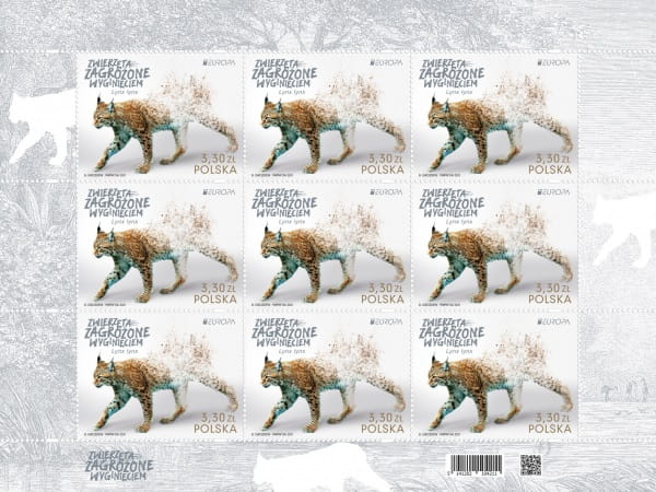 Arkusz Europa 2021 Zwierzęta Zagrożone Wyginięciem Lynx lynx Ryś - arkusz znaczków kolekcjonerskich o ograniczonym nakładzie pojedynczego znaczka 400 000 sztuk, emitent Poczta Polska.