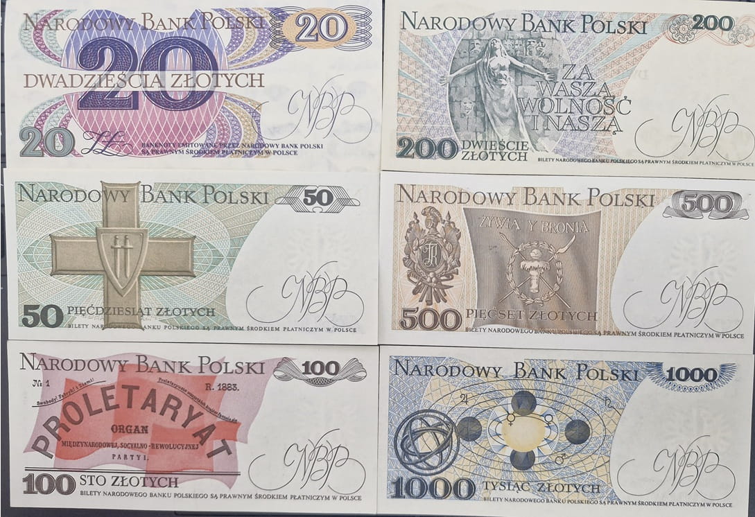 Zestaw 6 historycznych banknotów PRL