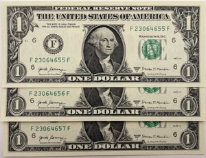 Banknot 1 dolar USA 2017 r. UNC 3 kolejne