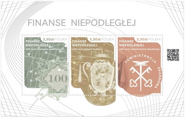 Finanse Niepodległej 2019 r. - Znaczki pocztowe w ilości trzech w bloku. Limitowany nakład kolekcjonerski.