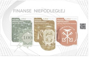 Arkusz Finanse Niepodległej 2019 r. - arkusze znaczków kolekcjonerskich w o ograniczonym nakładzie, emitent Poczta Polska.