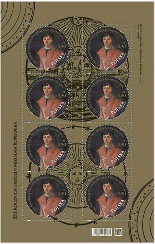 550 rocznica urodzin Mikołaja Kopernika 2023 r. - Arkusz znaczków kolekcjonerskich o ograniczonym nakładzie.