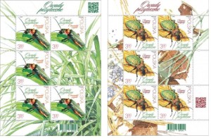 Owady pożyteczne (Arkusz x 6) 2023 r. - Zestaw 2 arkuszy z 10 znaczkami oraz 2 przywieszkami